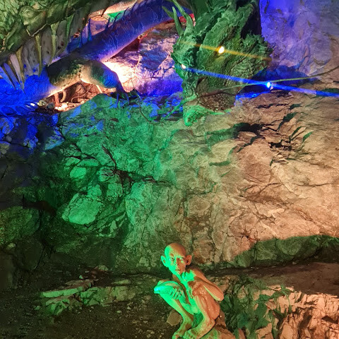 동굴 안에는 볼거리도 많고 멋지게 꾸며져 있어요. 동굴이 꽤 넓어서 다 둘러보려면 45분에서 1시간 정도 걸립니다. 무료 레이저 쇼도 있는데 정말 멋져요. 입장료는 6,000원에서 10,000원 정도입니다. 전체적으로 잘 꾸며져 있고 디자인도 훌륭해요. 멋진 점은 미라마 스튜디오 뉴질랜드(반지의 제왕 소품 제작사)와 협업한 조각상/전시회가 있다는 거예요.