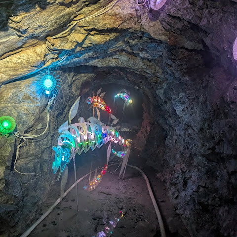 빛나는 동굴. 몇몇 수족관 구역도 있습니다. 원래는 1900년대 초 금광이었습니다. 수십 년 동안 방치되다가 2011년 관광 명소로 재개발되었습니다.