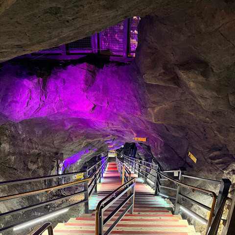 빛나는 동굴입니다. 몇몇 수족관도 있습니다. 원래는 1900년대 초에 채굴이 활발했던 광산이었습니다. 수십 년 동안 방치되다가 2011년에 관광 명소로 재개발되었습니다.