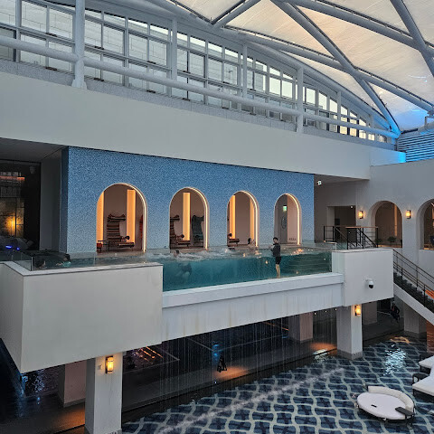 스파는 야외 DJ와 디지털 아트가 있는 현대적인 분위기입니다. 건식 룸도 여러 개 있습니다. 저는 편안한 자쿠지가 있는 동굴 스파를 즐겼습니다.