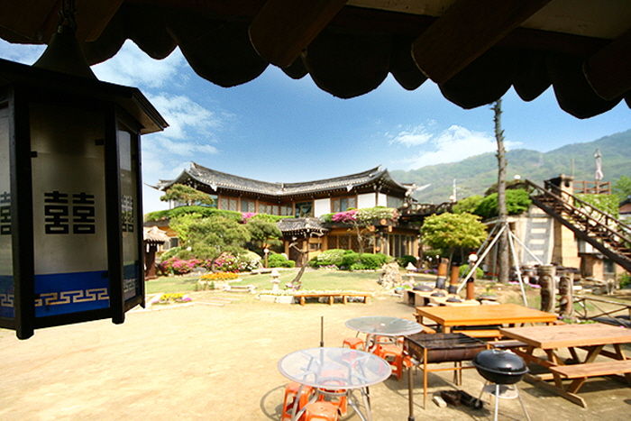 한옥마을 황토펜션은 경기도 양평 남한강변에 위치한 2층 한옥이다. 객실은 한실과 침실로 나뉘고, 내부는 황토와 한지로 마감해 아늑하다. 패밀리룸은 널찍한 거실과 주방을 갖춰 단체 여행객이 머물기에 좋고, 별관 수다방에는 황토 벽난로가 있어 장작불에 고구마를 구워 먹으며 추억을 쌓을 수 있다. 장작은 유료다. 황토와 참숯 찜질방을 무료로 이용할 수 있고, 사전 예약 시 유료로 야외 바비큐장, 캠프파이어 시설을 이용할 수 있다.