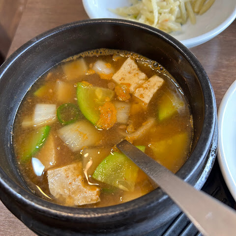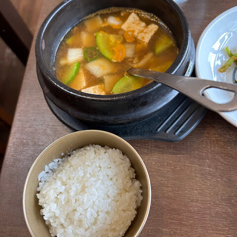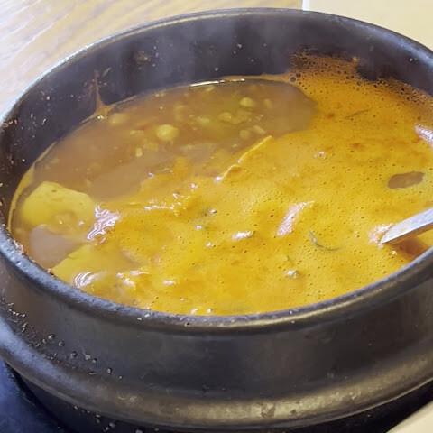 정말 인기가 많을 것 같은 이 레스토랑을 우연히 발견했습니다(풀하우스). 정식을 받았습니다. 전반적으로 훌륭한 식사입니다. 불고기 쇠고기는 좋았고 콩 두부 국물은 마음을 따뜻하게했습니다.