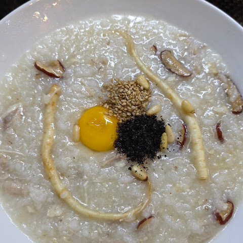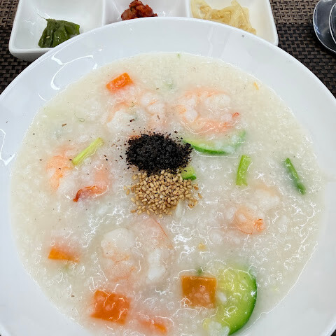 죽은 정말 맛있었고 서비스도 신속했습니다. 저희는 고급 전복 죽을 주문했어요.