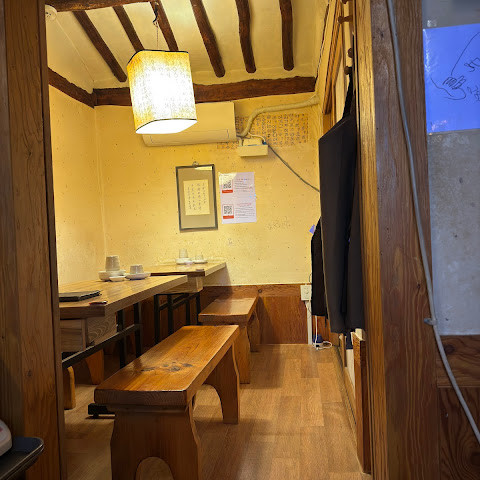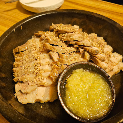 작은 골목에 자리 잡은 귀여운 식당. 작은 마늘 보쌈과 부추전을 주문해서 나눠 먹었어요. 정말 맛있었어요.