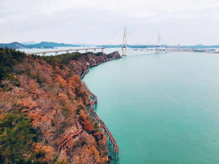 고하도 케이블 승강장 사는길에 위치한 고하도 해상데크를 방문하였어요. 케이블카, 유달산 그리고 아름다운 목포대교 전경을 마음껏 누려 보는 해상 데크길입니다. 아주 아름답습니다.