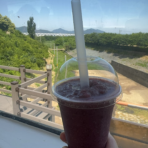 낙동강을 바라보며 전차에 앉아 있는 건 정말 차분하고 낭만적이었어요.