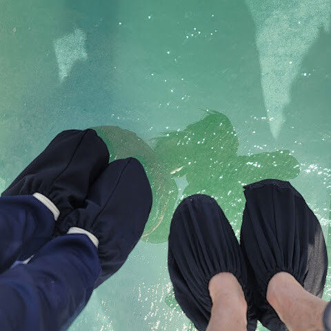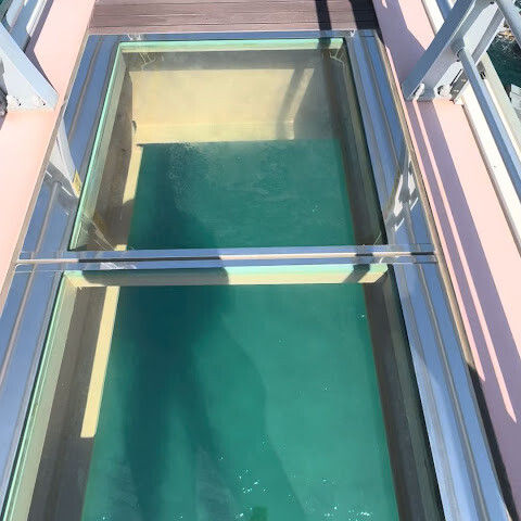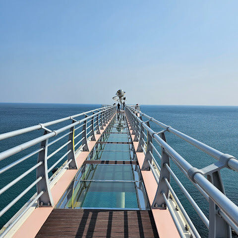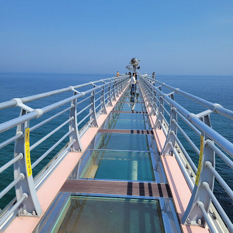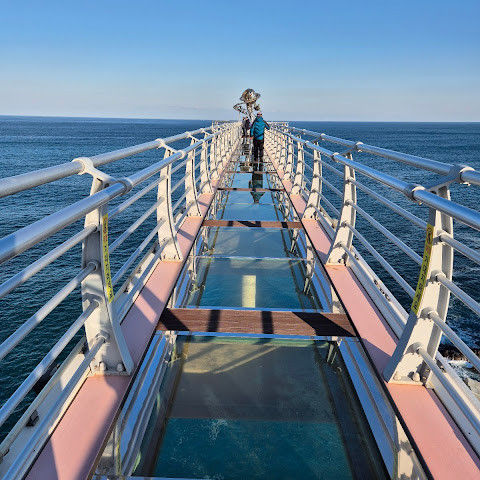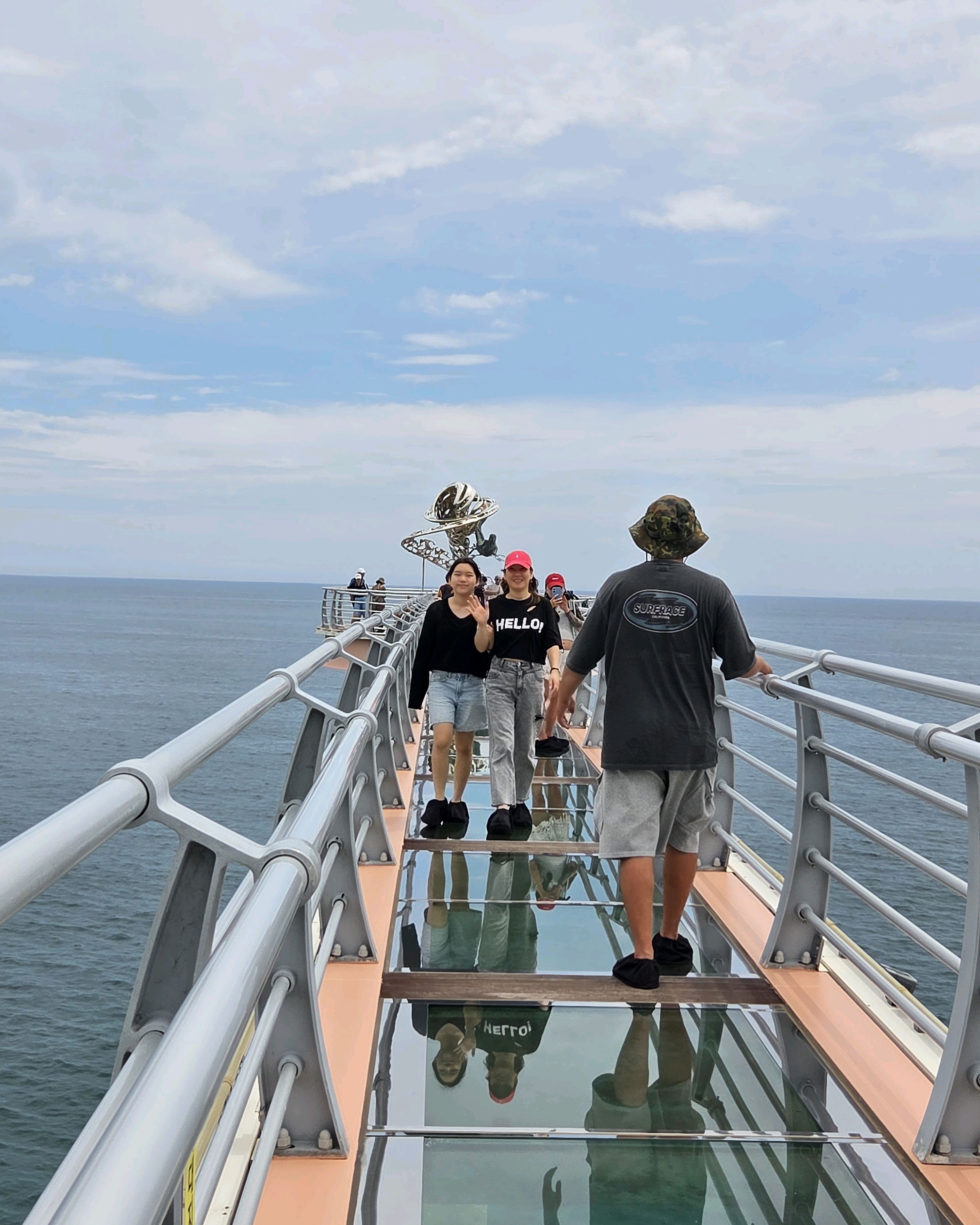 |  발밑에서 내려다보이는 바다색이 이쁘네요. 자세히 들여보이면 바다속이 보입니다. 솔솔 불어오는 해풍과 유리가 부서져버릴 것 같은 스릴은 덤입니다. 2023년 08월 22일 |