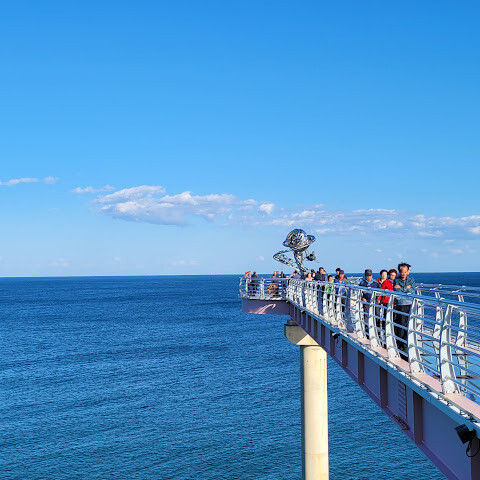 |  예전에 2번 왔었는데 바람이 심해서 통제하더라구요.. 3번만에 성공했내요.. 생각보다 높아서 좀 무섭긴했는데 뻥뚫린 바다보면서 끝까지 갔다왔다는.. 위쪽으로 공원에 등대들 보면서  바다멍좀 때리고 쉬다왔내요 2024년 11월 04일 |