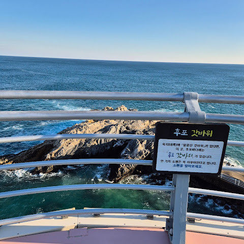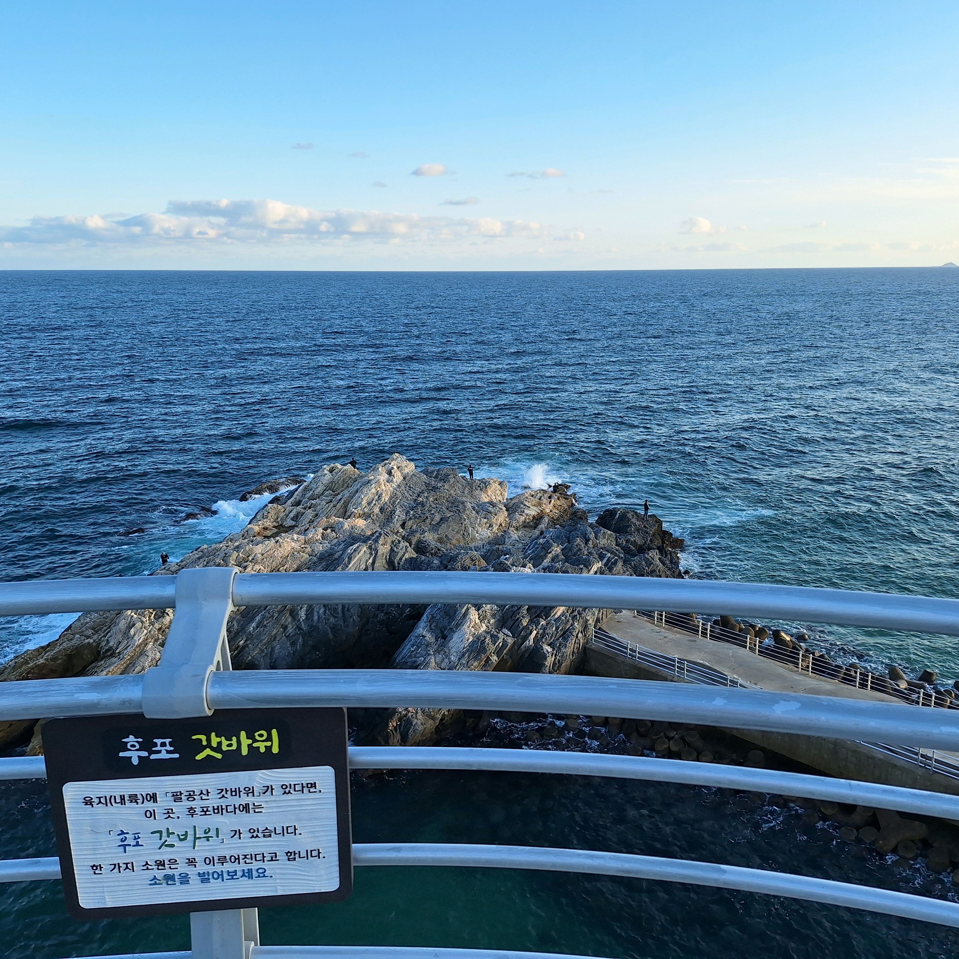 |  아주 날이 좋은 날. 선택이 옳았습니다. 드넓은 울진바다를 볼 수 있는 조금은 스릴이 넘치는 전망대가 아닐까 싶습니다. 에메랄드 바다에 취하면서 후포갓바위에 소원도 빌고, 이동하면서 구름다리도 건너고 정자에 들렸다 다음 목적지로 출발.😄 참고로 이곳은 일출 명소이기도 합니다. 2024년 06월 24일 |