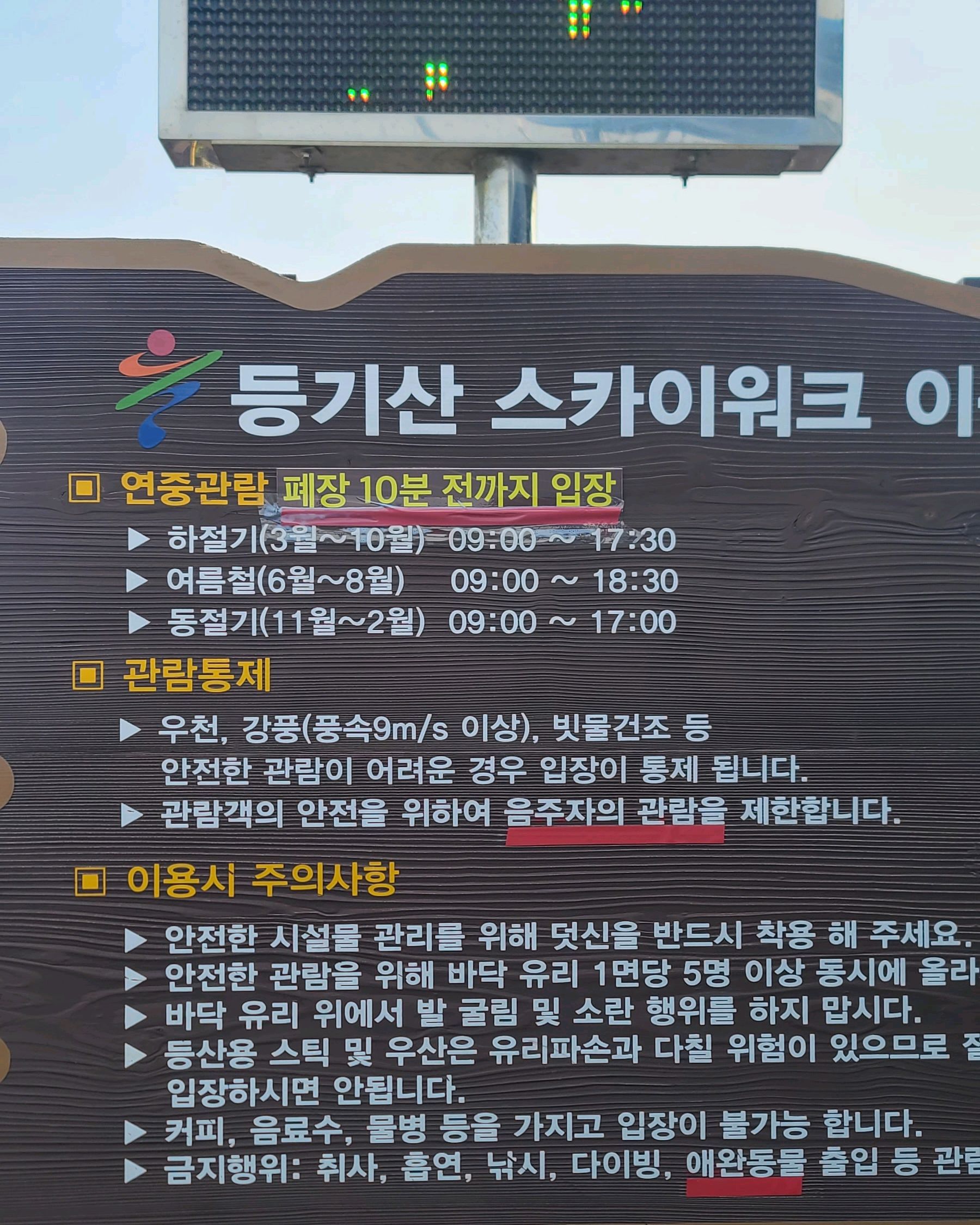 |  스카이워크 멋져요. 등기산도 걷기 좋고 이뻐고 좋아요. 화장실을 좀 깨끗하게 해주면 더 좋을 것 같아오.