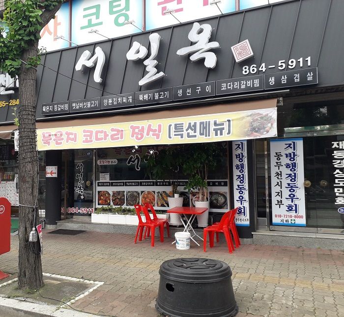 부대찌개점만 세 곳이 밀집해 있는 곳에서 묵은지 등갈비, 코다리 갈비찜, 봉평메밀 막국수 등의 한식을 고루 맛볼 수 있는 구 도심지에 위치한 한식집이다.