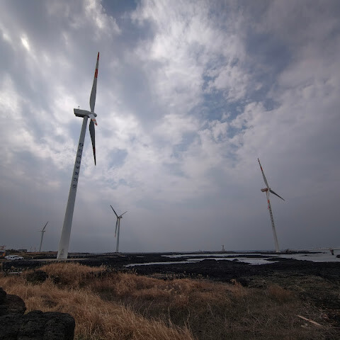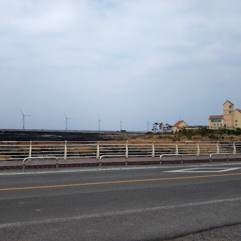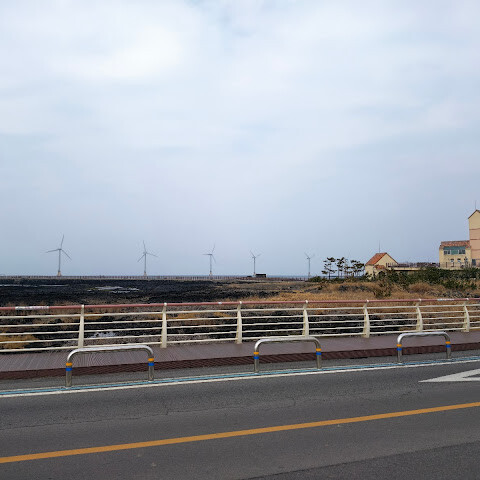 숨 막힐 듯 아름다운 곳이에요. 풍력 터빈과 부서지는 파도가 장관을 이루죠. 바람이 꽤 세지만(정말!), 그게 이곳의 매력 중 하나예요. 산책, 사진 촬영, 그리고 제주의 아름다운 자연에 푹 빠져보기에 더할 나위 없이 좋은 곳이에요. 제주에 가면 꼭 가봐야 할 곳이에요!