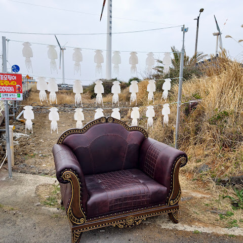 거대한 선풍기와 바다 풍경을 사진에 많이 담을 수 있지만, 바람이 매우 강합니다.