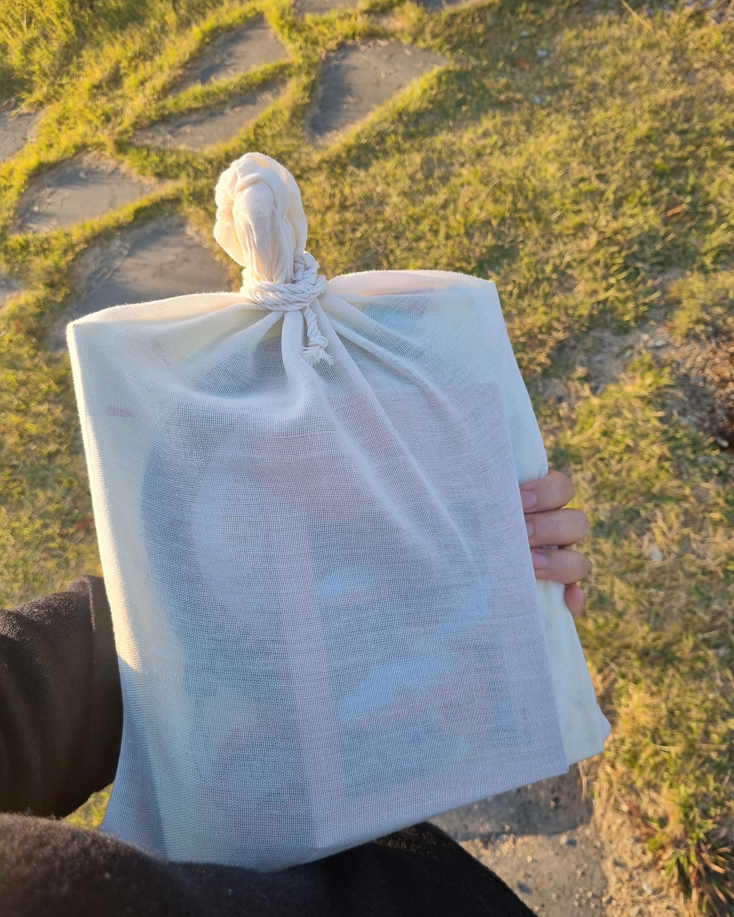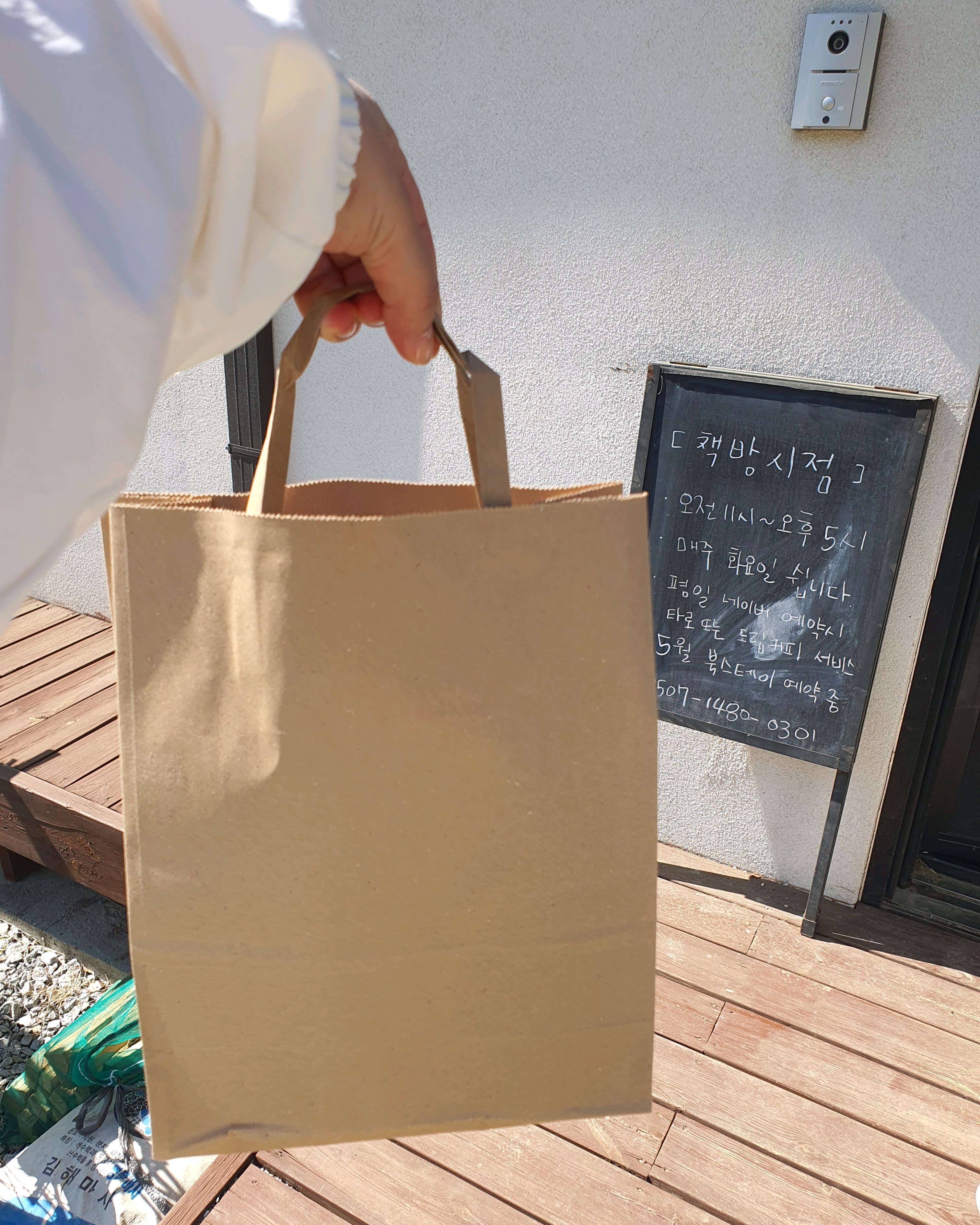 구매한 책은 쇼핑백 대신 강화 소창 주머니에 담아주십니다