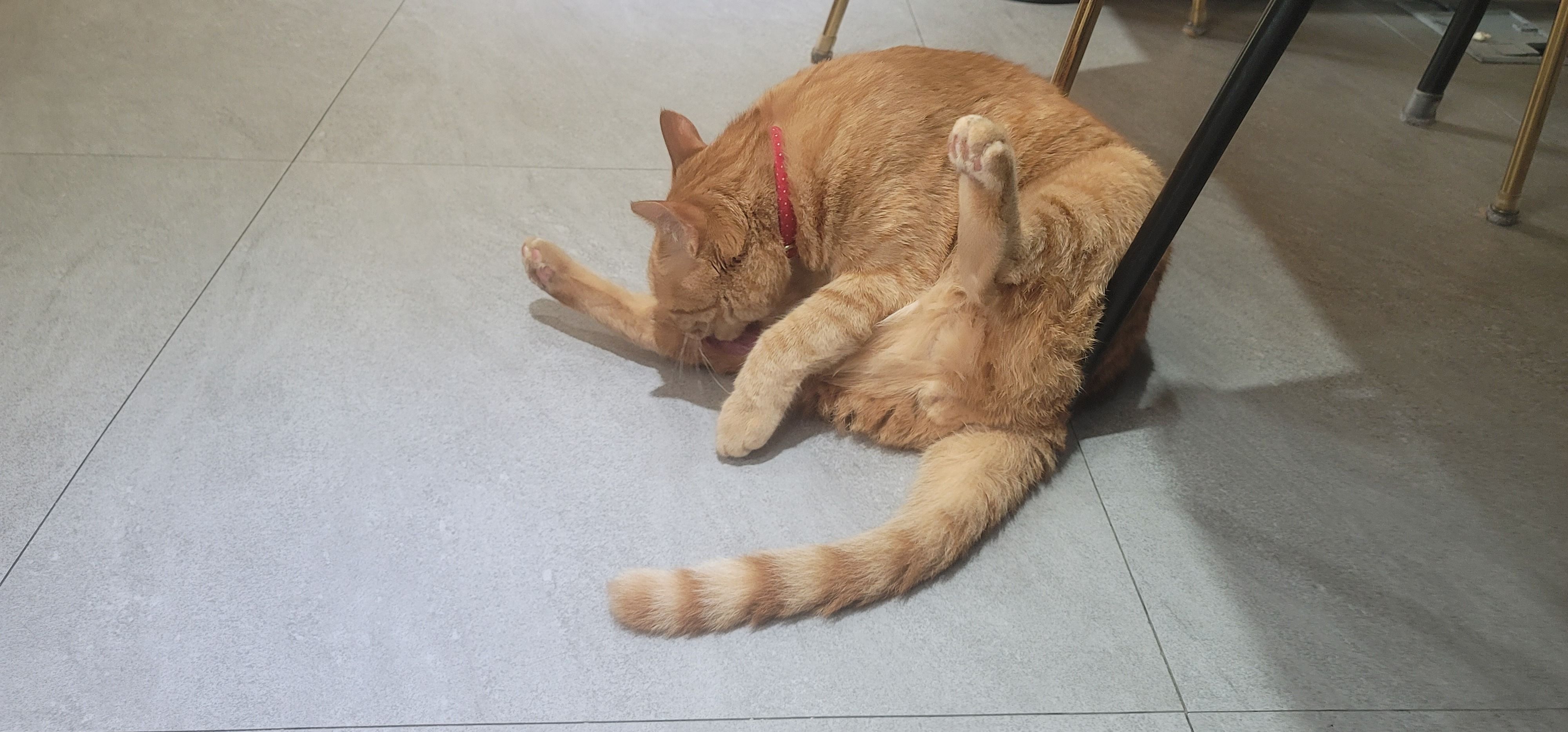 아깽이 때부터 봐서 궁디팡팡해 주면서 예뻐해 주고 있어요.