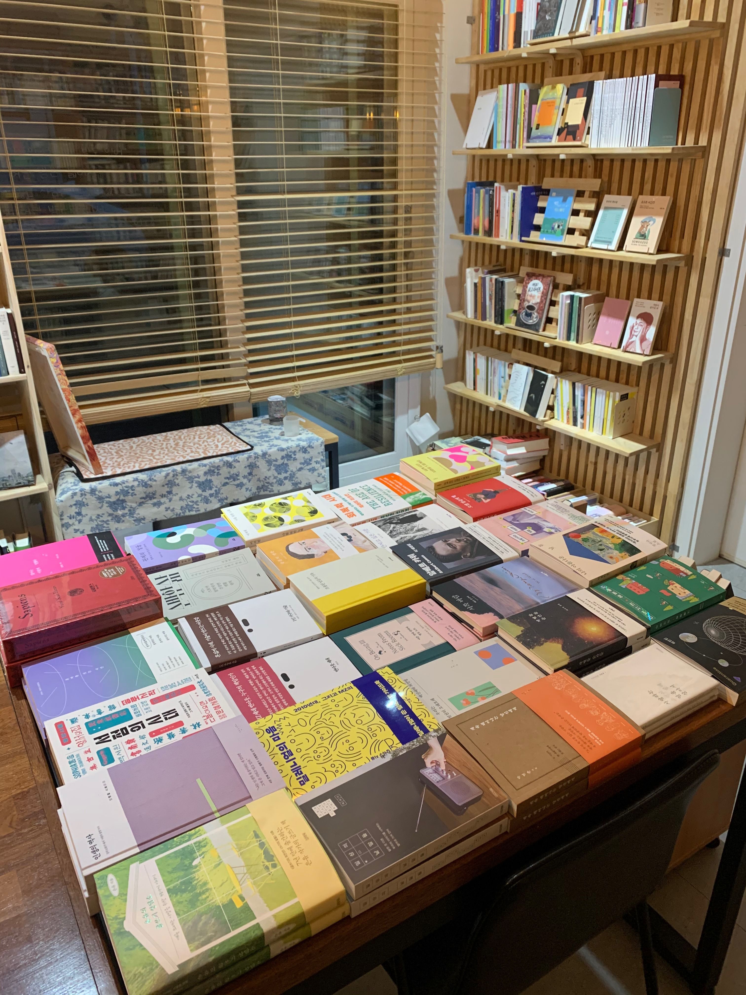 책방 사장님의 컬렉션이 정말 좋은 책방입니다! 들어가서 짚이는 모든 책이 좋았어요. 땅바닥에 주저 앉아 제목들을 하나씩 흝기만 해도 마음이 편안해지는 기분이었습니다. 작은 책방이 가질 수 있는 장점을 극대화해둔 느낌이었어요.