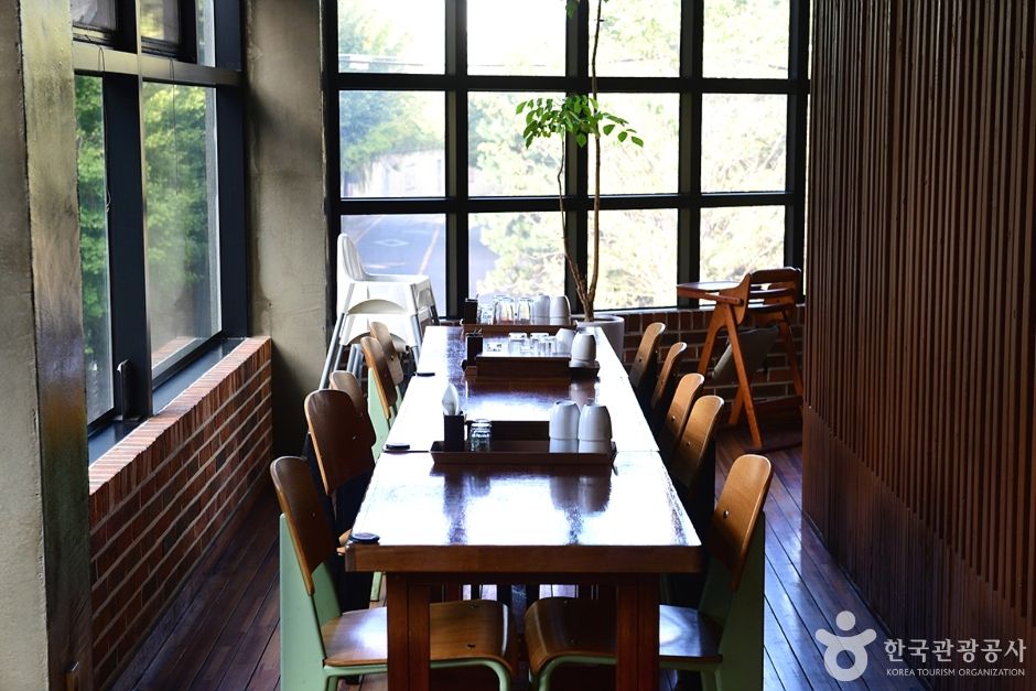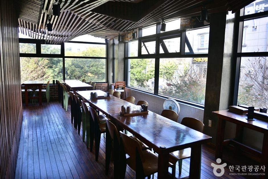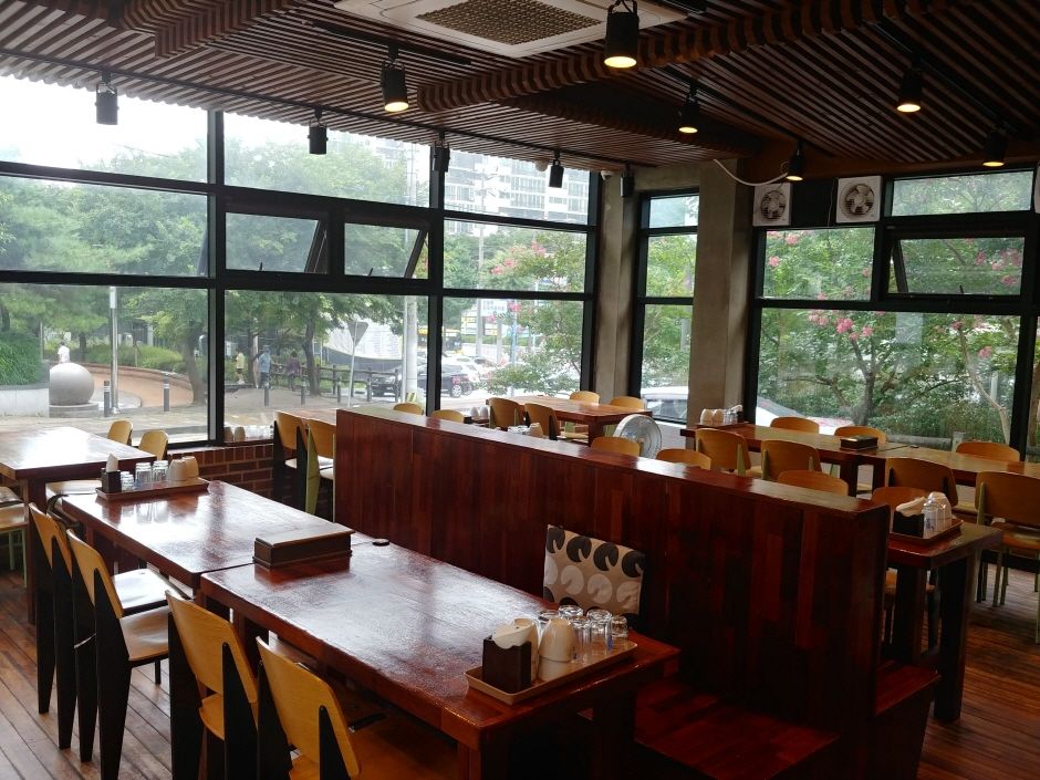 1층을 메인홀 공간으로 사용하고 있고 2층은 10명 이상이면 하루에 1팀씩만 받는 프라이빗 공간으로 운영한다. 주문하면 요리를 만드는 주방의 모습을 볼 수 있는 오픈형 주방이다. 1층, 2층 모두 넓은 창이 한쪽 벽면에 위치해 있어 어느 쪽에 앉더라도 푸릇푸릇한 숲뷰를 제공한다. 돼지갈비를 기본으로 하지만 매운돼지갈비, 치즈갈비, 마늘갈비, 매운치즈갈비, 짚불갈비 등 다양하다. 돼지고기 외에도 숯닭, 매닭, 치닭, 마닭, 매치닭 등 닭 메뉴도 갖추고 있다. 1인 주문도 가능해서 반반메뉴로 다양하게 즐기기 적합하다. 사이드 메뉴로는 후식냉면, 정식냉면, 잔치국수, 누룽지, 밥 등이 있다.