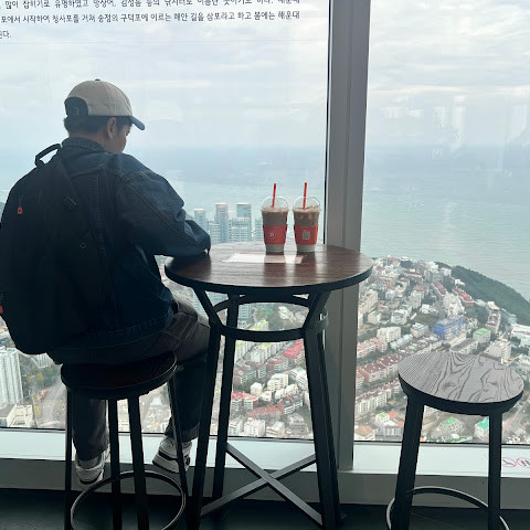 사진 스팟 많아 친구랑 사진 많이 찍었어요. 부산이 한눈에 내려다보이는 전망대인데 98~100층 세 층을 아주 잘 꾸며 놨더라구요~ 한번쯤 가볼만 합니다.