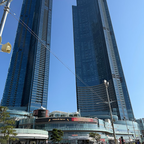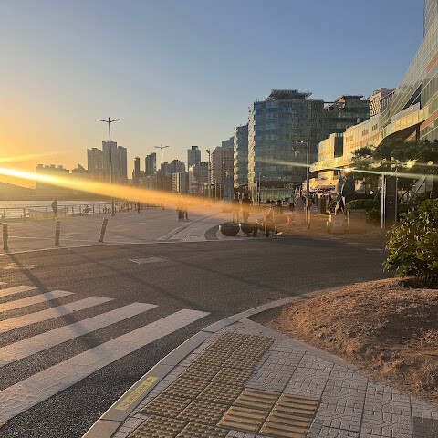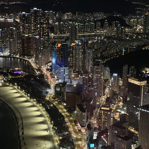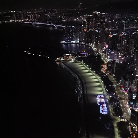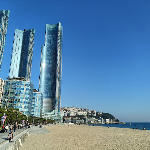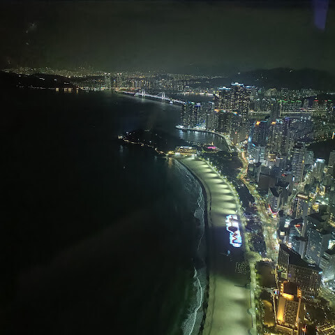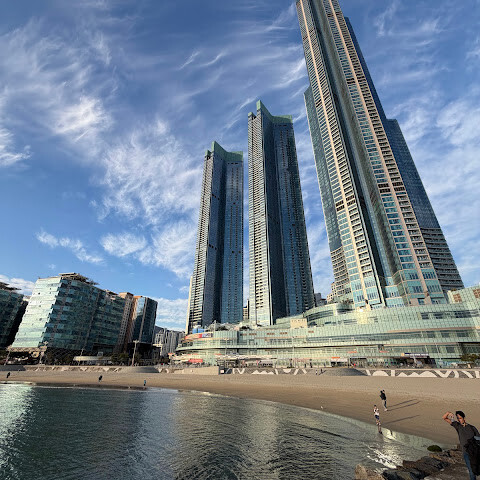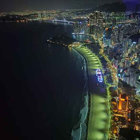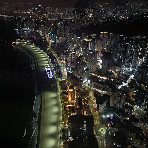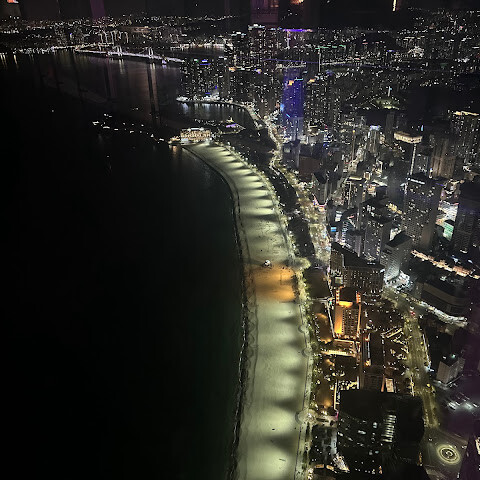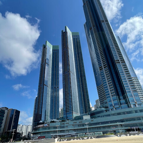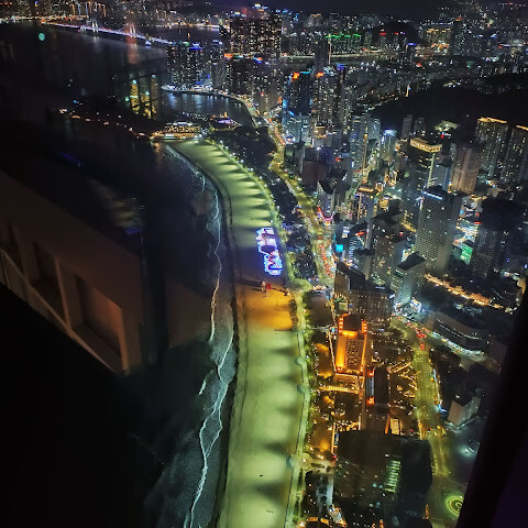 야경이 아름다워요. 낮에도 괜찮아요! 사실 해운대역 5번이나 7번 출구에서 나와 해운대 해수욕장 쪽으로 바다를 마주한 모래사장을 따라 쭉 걸어가는 게 더 빨라요. 바다 풍경을 감상하며 로맨틱한 산책을 즐길 수도 있어요. 버스나 지하철을 타는 건 정말 악몽 같아요. 표지판도 한국어로만 되어 있고, 너무 불분명해서 전혀 알아들을 수가 없었어요. 결국 엄청나게 빙글빙글 돌아서 걸어야 했는데, 정말 답답했어요…
