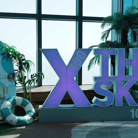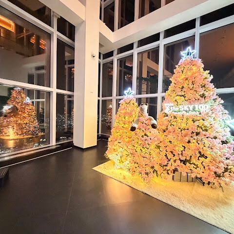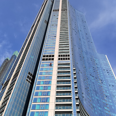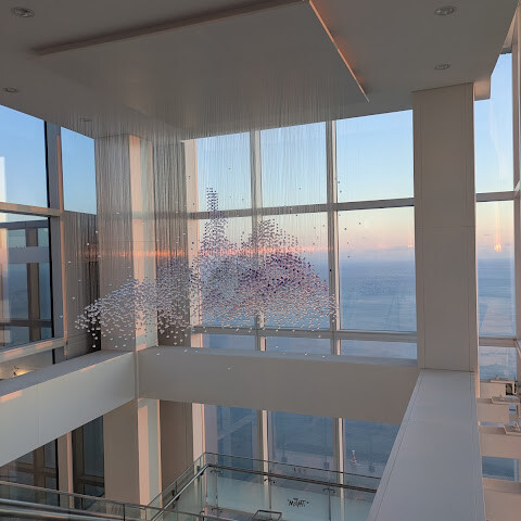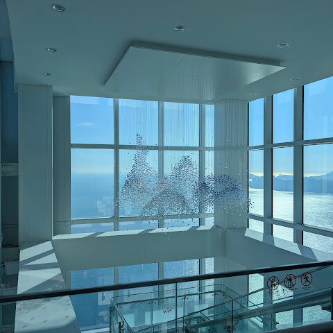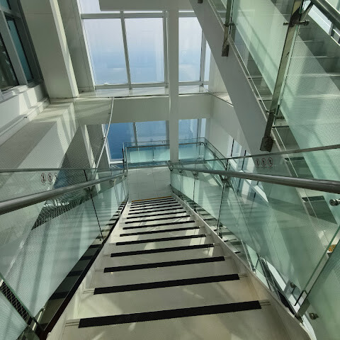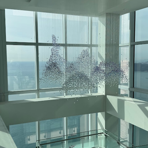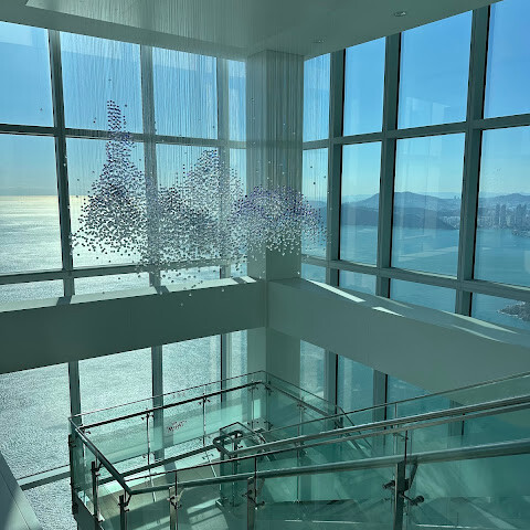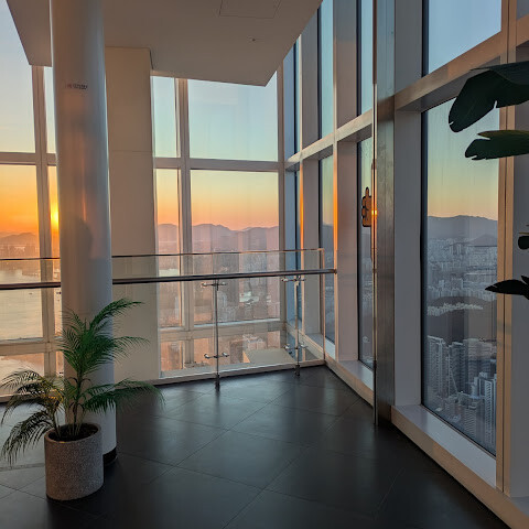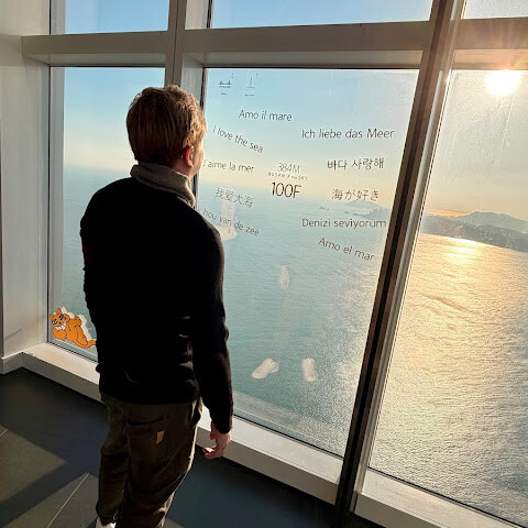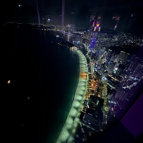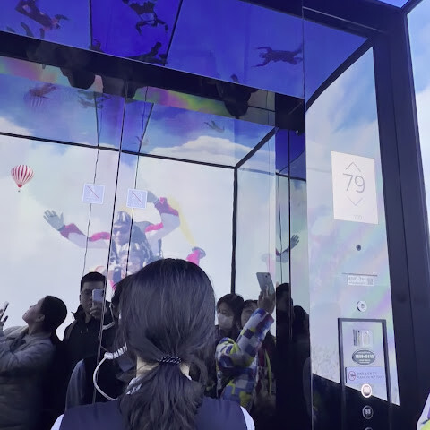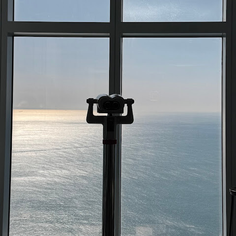바닷가에 있는 초고층 빌딩 100층에 있는 곳이에요. 마침 그 달에 가족 중에 생일인 사람이 있어서 (여권 검사를 해요) 티켓을 전부 할인받았어요! 👍🏻 65세 이상 어르신들을 위한 할인 티켓도 있어요 (여권 검사 필요).