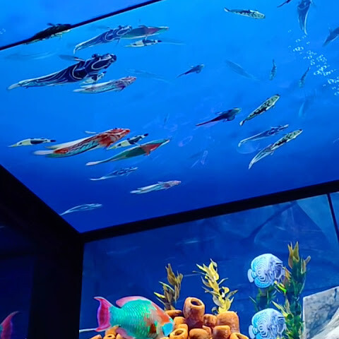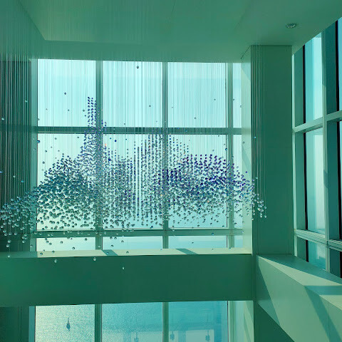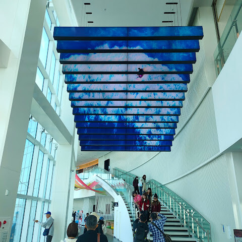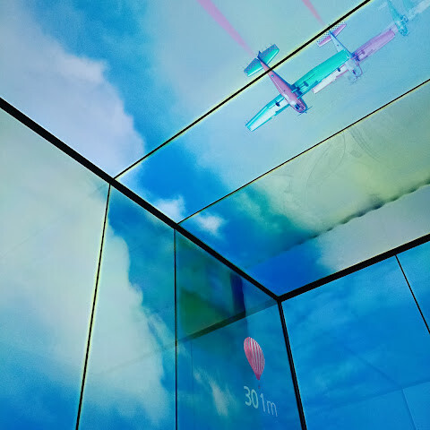 입구에서부터 직원이 안내하고, 엘리베이터 탑승 시에도 도움을 제공하여 더욱 편안하고 효율적인 경험을 선사합니다. 엘리베이터는 매우 빠르며, 네 벽과 천장에 설치된 대형 스크린은 올라가는 동안 다양한 풍경과 음향 효과를 재생하여 마치 계절, 바닷속, 그리고 하늘을 단 몇 초 만에 여행하는 듯한 환상을 선사합니다.