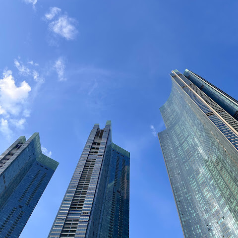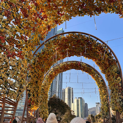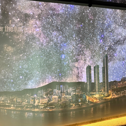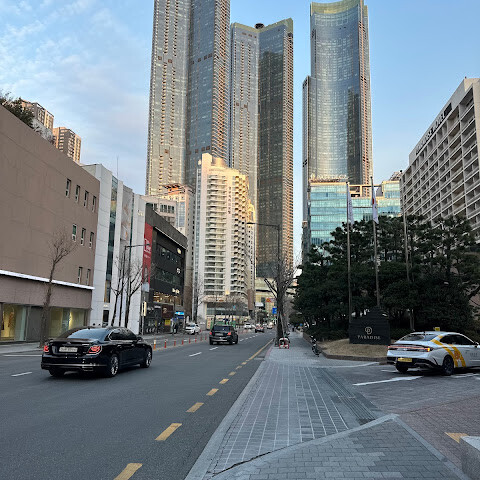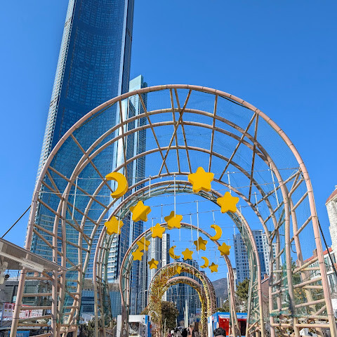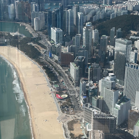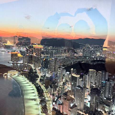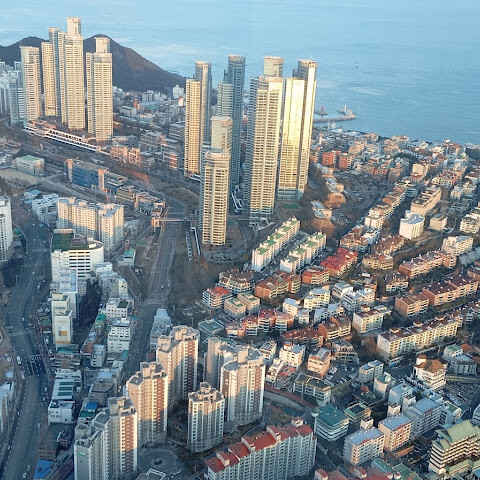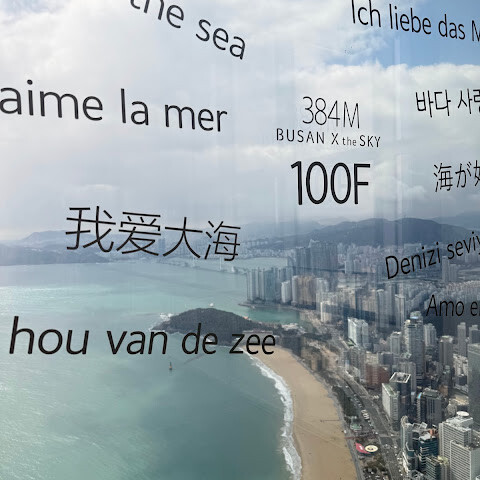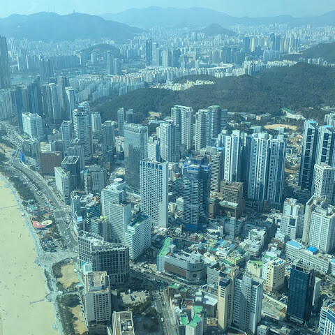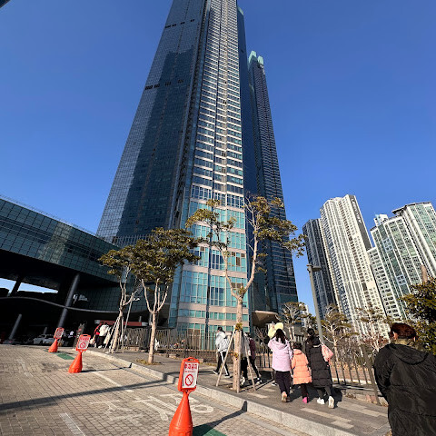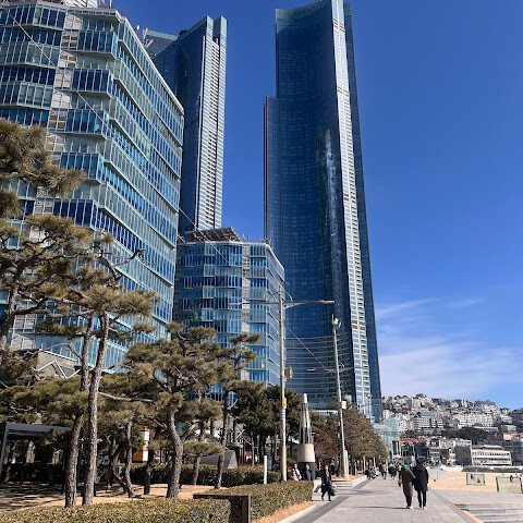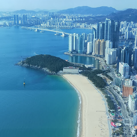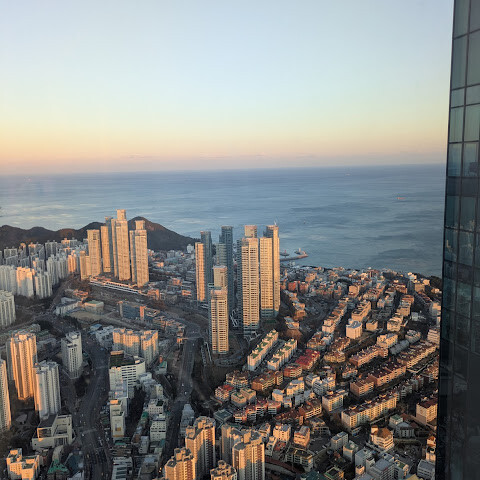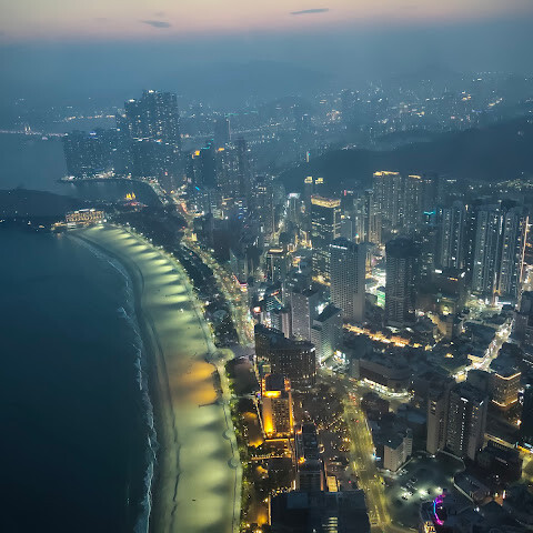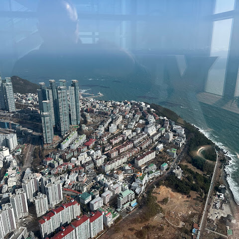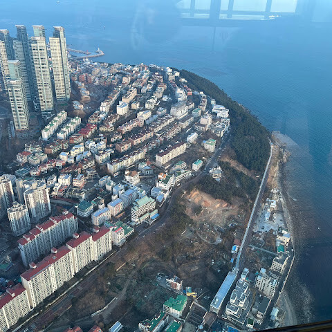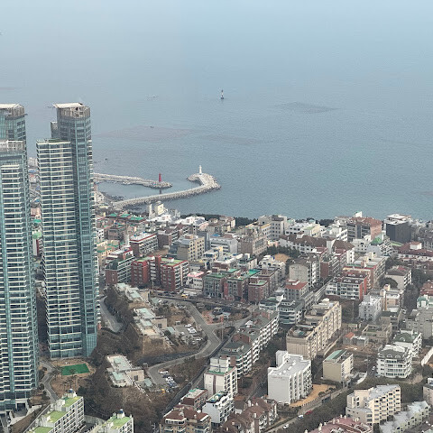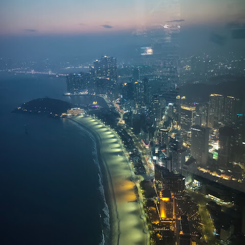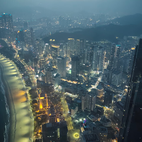 저희는 패스를 이용해서 여기까지 왔어요. 밤에 드론 비행을 보고 싶었는데, 여기는 낮에만 경치를 볼 수 있더라고요. 그래도 낮에도 정말 아름다웠어요. 고층 건물들이 마치 비현실적으로 보일 정도였고, 해안 관광이 얼마나 잘 발달했는지 놀라웠어요. 시설도 훌륭했고요. 가장 높은 건물에는 스타벅스가 있었고, 100층에 올라간 후에는 해안 열차를 탔어요. 사람이 정말 많아서 모든 걸 다 볼 수는 없었어요. 모든 걸 다 보려면 여러 번 와야 할 것 같아요. 해운대 해변과 해안선, 그리고 새로 지어진 건물들을 구경하기에 정말 좋은 곳이에요!