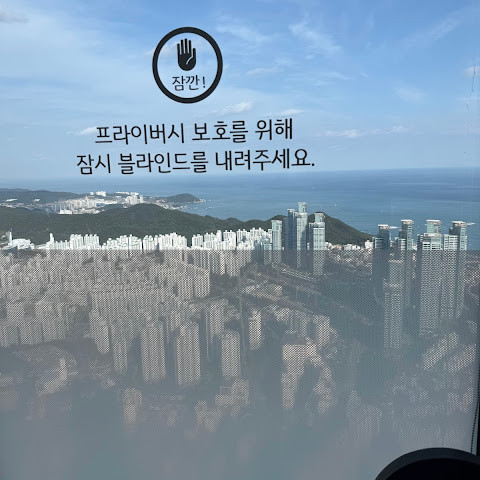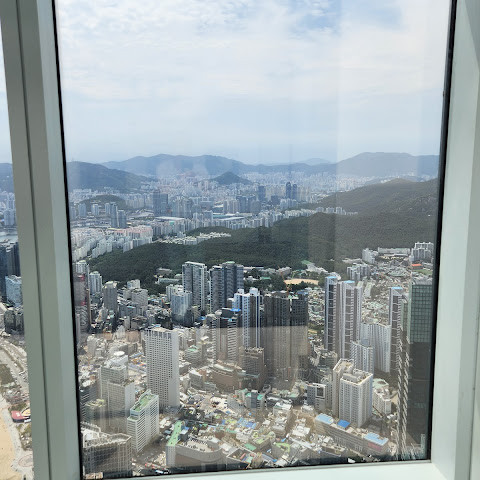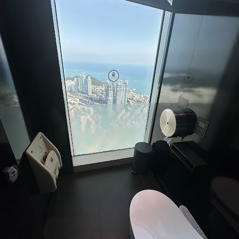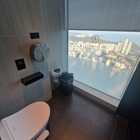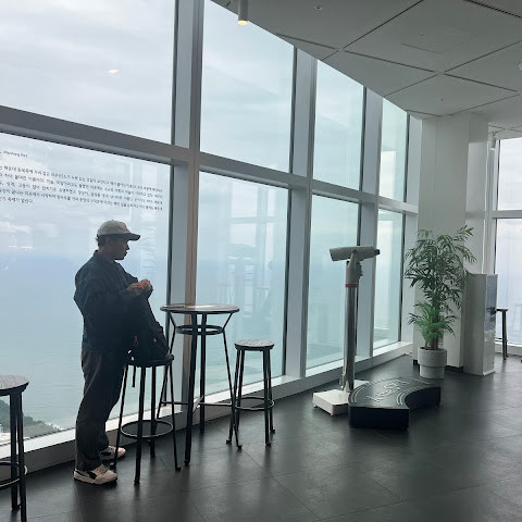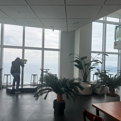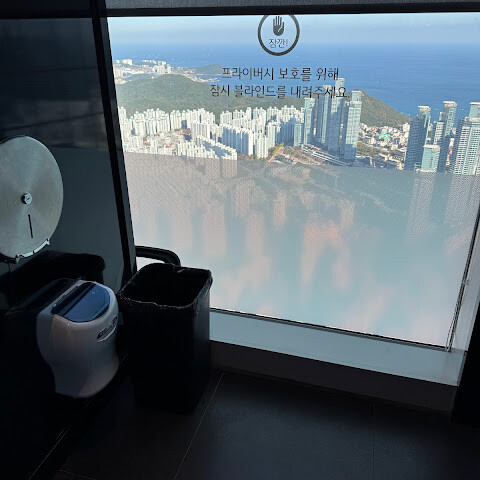 부산에 처음 온다면 전망을 보러 올라올 만하지만, 솔직히 "한 번 보는 것만으로도 충분해요." 가장 큰 문제는 유리가 너무 더럽다는 것입니다. 특히 해변 쪽 유리가 김이 서리는데, 정말 아쉬워요. 가장 깨끗한 유리는 화장실 근처예요 🙂. 사진을 찍고 싶은 분들은 좋은 각도를 찾아야 할 수도 있습니다.