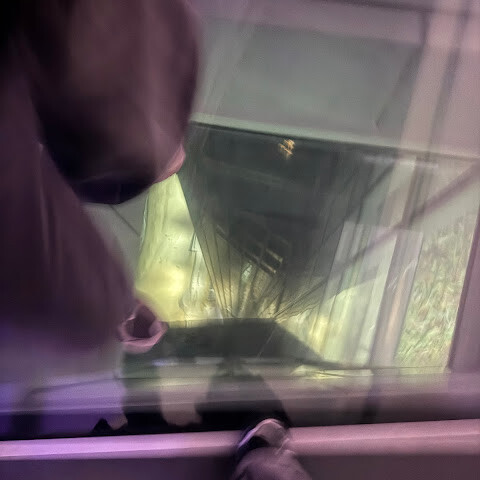 하지만 일부 구역은 빛 반사가 심해요. 아래층은 훨씬 깨끗해요. 창살이나 난간이 없어서 시야가 탁 트여요.