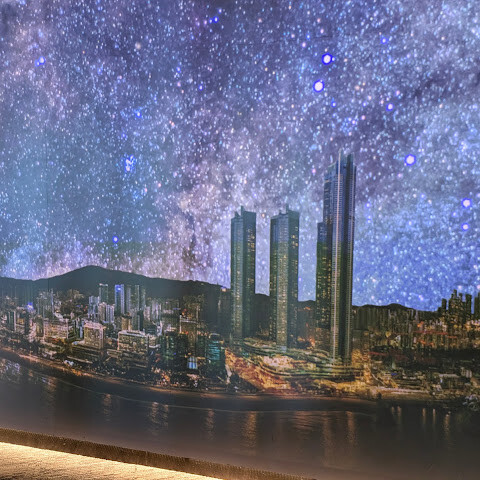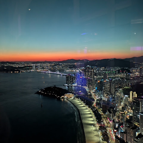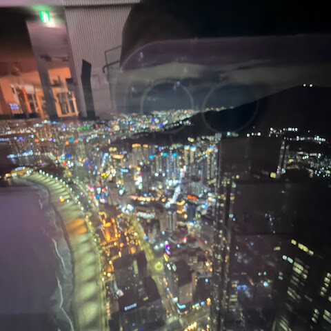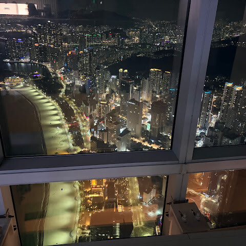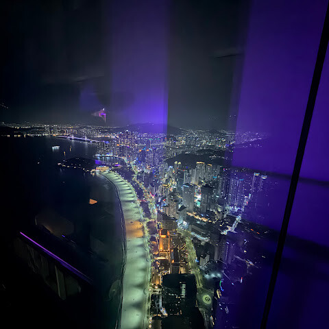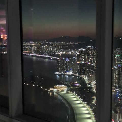 일부러 실내 조명을 어둡게해서 유리에 조명 비치는걸 최소화해놔서 야경찍기 좋았어요! 부산구경 잘 했어요!
