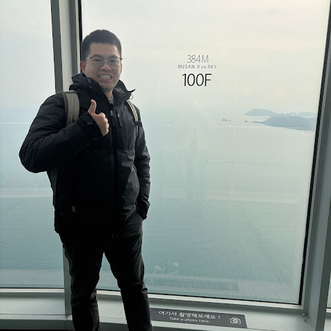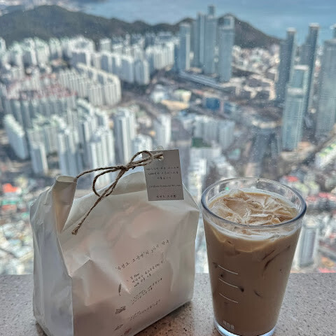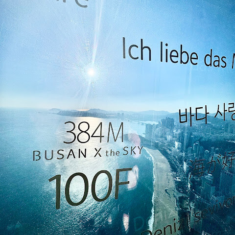 "부산 X 더 스카이"는 한국에서 두 번째로 높은 건물(411.6m)인 해운대 LCT 랜드마크 타워 내에 위치한 한국 최대 규모의 전망대로, 바다와 도시의 전경을 동시에 감상할 수 있습니다. 부산 패스를 이용하면 모든 것을 즐길 수 있습니다. 초고속 엘리베이터를 타고 100층으로 올라가면 기념사진 촬영이 진행됩니다. 100층에 도착하면 직원들이 다양한 사진 중에서 선택할 수 있도록 안내해 주며, 마음에 드는 사진을 고를 수 있습니다. 사진 한 장에 300대만달러가 넘는 가격이지만, 사진이 너무 마음에 들어서 기념품으로 하나 구매했습니다. 파노라마 전망을 감상한 후에는 아래층에 있는 스타벅스에서 휴식을 취할 수 있습니다. 이곳은 세계에서 가장 높은 스타벅스입니다!