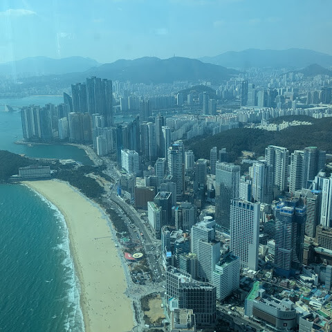 해운대 해변을 만끽한 후, 「Visit Busan Pass」에 포함되어 있었기 때문에 갔습니다. 고속 엘리베이터로 100층까지. 맑은 하늘이 빛나는 해운대 해변 전체와 산, 부산의 거리 풍경을 한눈에 볼 수 있습니다. 날씨가 좋은 날은 추천합니다.