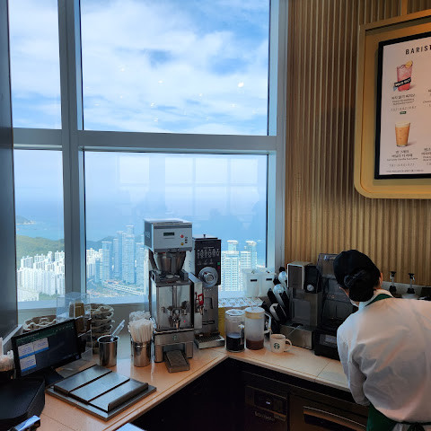99층, 가장 높은 스타벅스, 추천 음료. 엘리베이터도 빠르고, 열기구 화면도 아름다워요.