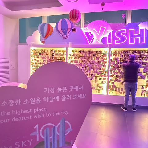 와, 정말 멋진 경험이었어요. 전망대가 너무 잘 만들어져 있더라고요. 미술 전시, 아름다운 명언들, 비행기 모형, 소원 구름까지 모두 아름다웠어요.