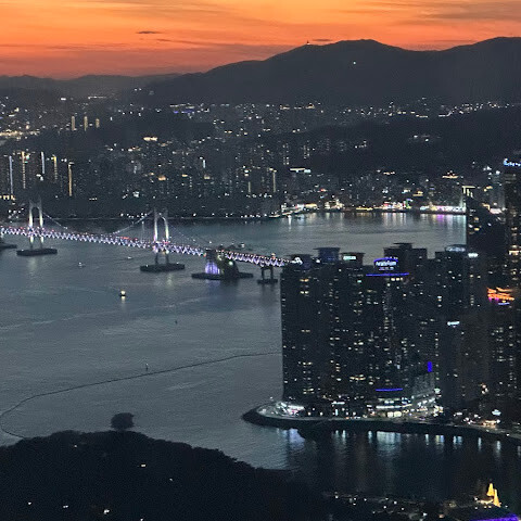 부산 여행의 최고 하이라이트! 구름 위에서 바라본 바다와 도시의 야경은 정말 숨 막힐 듯 아름다웠습니다!