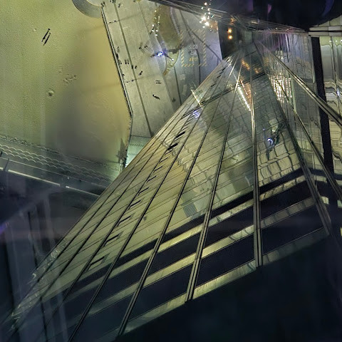 전망대 자체는 비교적 어두운 조명으로 설계되어 야외 야경을 더욱 선명하게 감상할 수 있습니다. 하지만 두꺼운 유리 때문에 반사가 불가피하여 야간 사진 촬영에 영향을 줄 수 있습니다. 사진을 찍으려면 적절한 각도를 찾거나 유리에 가까이 다가가야 합니다. 하지만 육안으로는 그럭저럭 볼 만합니다.