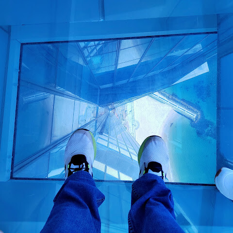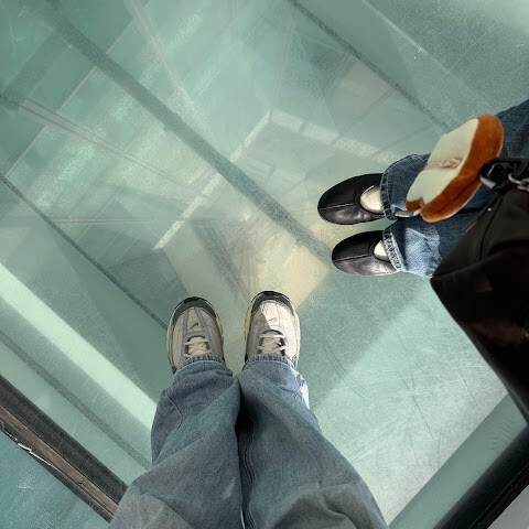 유리 바닥에 약간 흠집이 있어서 사진이 기대만큼 선명하게 나오지는 않지만, 완벽한 사진이 중요한 게 아니라 그곳에 서서 느끼는 기분, 높이, 원근감, 그리고 전체적인 규모를 느껴보는 게 중요한 거잖아요.