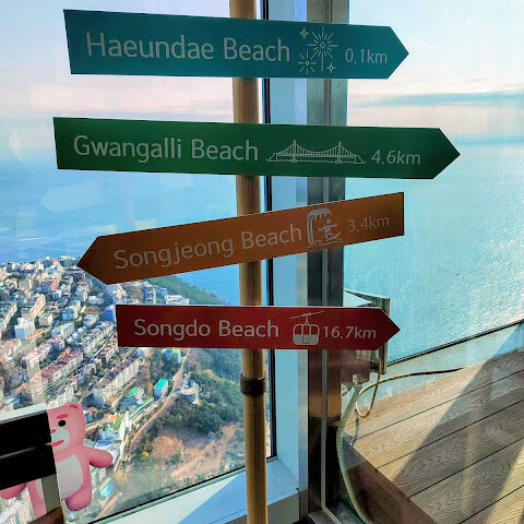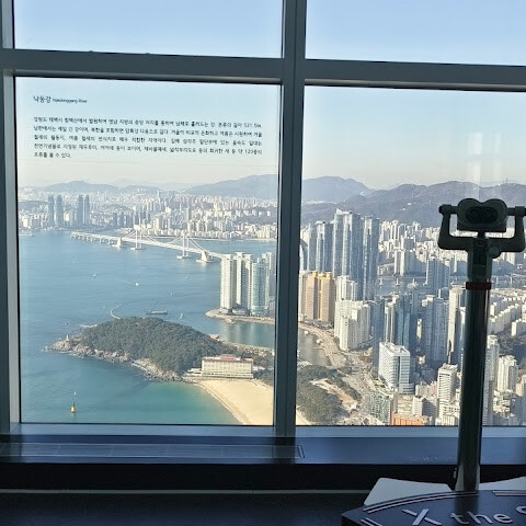 부산에서 가장 아름다운 해변이자 어쩌면 한국에서도 손꼽히는 해운대 해변 바로 앞에 위치한 이 전망대는 412미터 높이에 자리하고 있습니다. 엘리베이터를 타면 단 몇 초 만에 도착할 수 있으며, 101층 건물 중 100층에 있습니다. 특히 해변과 광안대교의 멋진 전망을 감상할 수 있으며, 유리 산책로는 꼭 한번 걸어보시길 추천합니다.