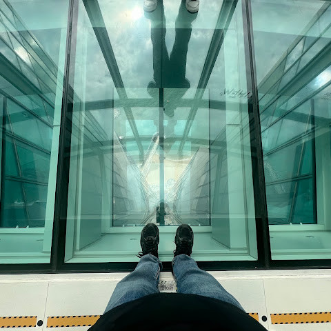 엑스 더 스카이에는 전망대 외에도 세계에서 가장 높은 곳에 위치한 스타벅스도 있습니다. 또한, 아래 도시를 바로 내려다볼 수 있는 투명한 유리 바닥도 있습니다. 땅은 보이지만 투명한 유리 위를 걷는 것이므로 심장이 약한 분들은 다리가 후들거릴 수 있습니다. 이곳은 인스타그램에 올리기 좋은 장소로 매우 인기가 많습니다.
