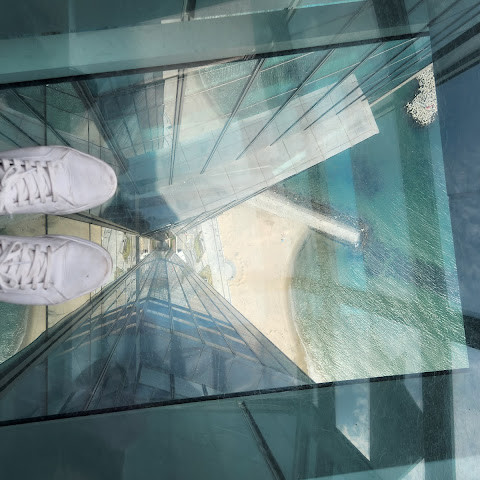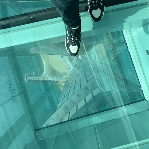 바닥이 투명해서 아래까지 훤히 보이는 곳도 있었어요. 정말 땀이 많이 났어요! 😆😆😆 98층에 스타벅스가 있다는 건 정말 인생이 바뀌는 경험이에요, 하하하.