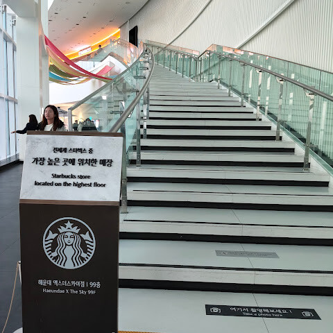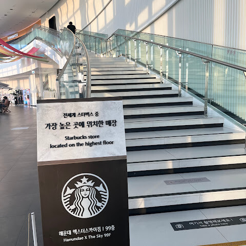날씨가 맑은 날에는 탁 트인 전망을 감상할 수 있습니다. 99층에는 스타벅스가 있어서 잠시 쉬어갈 수 있었습니다. 해운대는 처음 방문했는데, 층마다, 모든 정류장, 화장실, 구석구석까지 모두 둘러보고 쉬면서 사진도 찍고 경치도 즐기기에 정말 좋은 곳입니다.