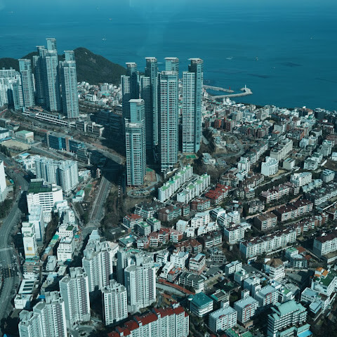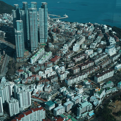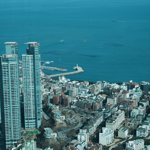 하늘에서 바라보는 부산의 멋진 풍경을 감상하세요.