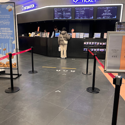 수족관을 구경한 후에는 도보로 약 10분 거리에 있는 주변 명소들을 산책할 수 있습니다. 지하에는 올리브영 매장도 있으니 구경해 보세요. 패스를 사용하시는 경우, 먼저 카운터에서 티켓으로 교환하셔야 합니다. 1층에서 100층까지 걸어가는 데는 약 56초밖에 걸리지 않습니다. 이번에는 날씨도 좋았고 전망도 훌륭했습니다. 98층에 있는 스타벅스에는 들어가지 않았지만, 시간이 되시면 잠시 쉬어가기 좋은 곳입니다!