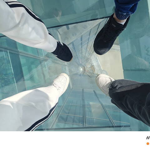 유리 바닥이있어 사진을 찍을 수 있습니다.