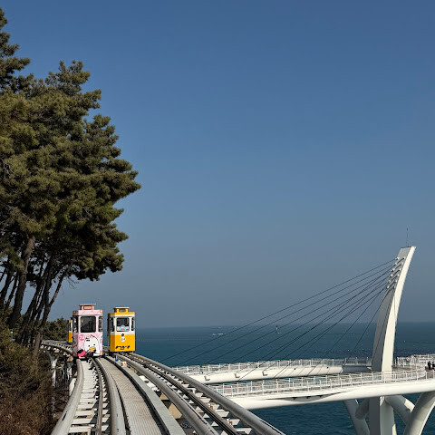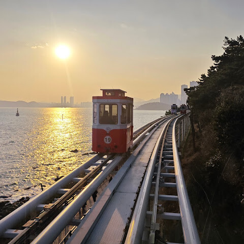다만 인기 많아서 시간대 잘못 잡으면 대기가 길 수 있으니 예매는 필수. 탑승 후엔 속도가 느긋해서 오히려 여유롭게 구경하기 좋았고, 중간중간 내려서 산책로 걷는 재미도 컸어. 노을 시간에 맞추면 색감이 미쳤다. 또 갈래! 미포 쪽에서 시작해 청사포로 넘어가는 구간은 카메라를 내려놓기 어려울 정도로 뷰가 계속 터지고, 정류장 주변도 깔끔해서 쉬어가기 좋았어. 따뜻한 음료 하나 들고 걷다가 다시 타면 리듬이 딱 맞는다. 주차는 일찍 가면 편해. 강추!