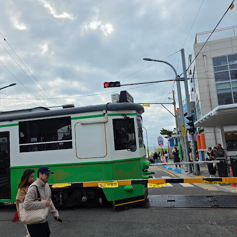 슬램덩크 애니메이션에 나왔던 바로 그 장소, 철길과 도로가 만나는 곳에서 기념사진을 찍어보세요.