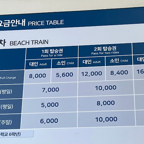 다른 사람들과 달리 저희는 청사포에서 미포로 갔습니다. 사람이 덜 붐볐고, 경치도 청사포 못지않게 멋졌습니다! 아쉽게도 웹사이트 오류 때문에 미리 티켓을 구매할 수는 없었지만, 현장 매표소에서 구입할 수 있었습니다. 정말 훌륭한 관광지였고, 가격도 아주 합리적이었습니다!