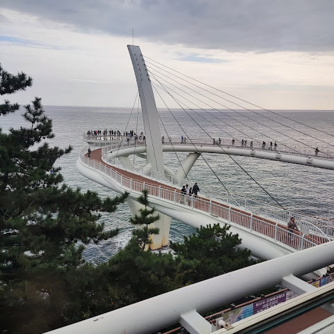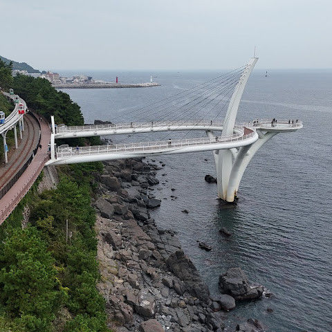 동부산의 아름다운 해안을 따라 편안한 캡슐 투어를 즐겨보세요. 저희는 2인 가족으로 4인승 캡슐을 다른 사람과 함께 탈 필요 없이 모두 이용할 수 있었습니다. 기차는 더 붐볐지만 더 빠르고, 두 스카이워크 모두 즐거웠습니다. 특히 공식 웹사이트를 통해 캡슐 티켓을 온라인으로 미리 예매하는 것이 좋습니다. 인기 시간대는 한 달 전에 마감될 수 있습니다. 제 경험상 다른 국가의 신용카드도 사용 가능하지만, 반대 의견도 있습니다. 결제 과정에서 '신용카드'를 선택한 후 '기타 카드'를 선택하세요. 비자와 마스터카드는 긴 목록 맨 아래에 있습니다. 해안을 따라 걸을 수도 있습니다. 산책로는 잘 정비되어 있으며 아름다운 풍경을 선사합니다.