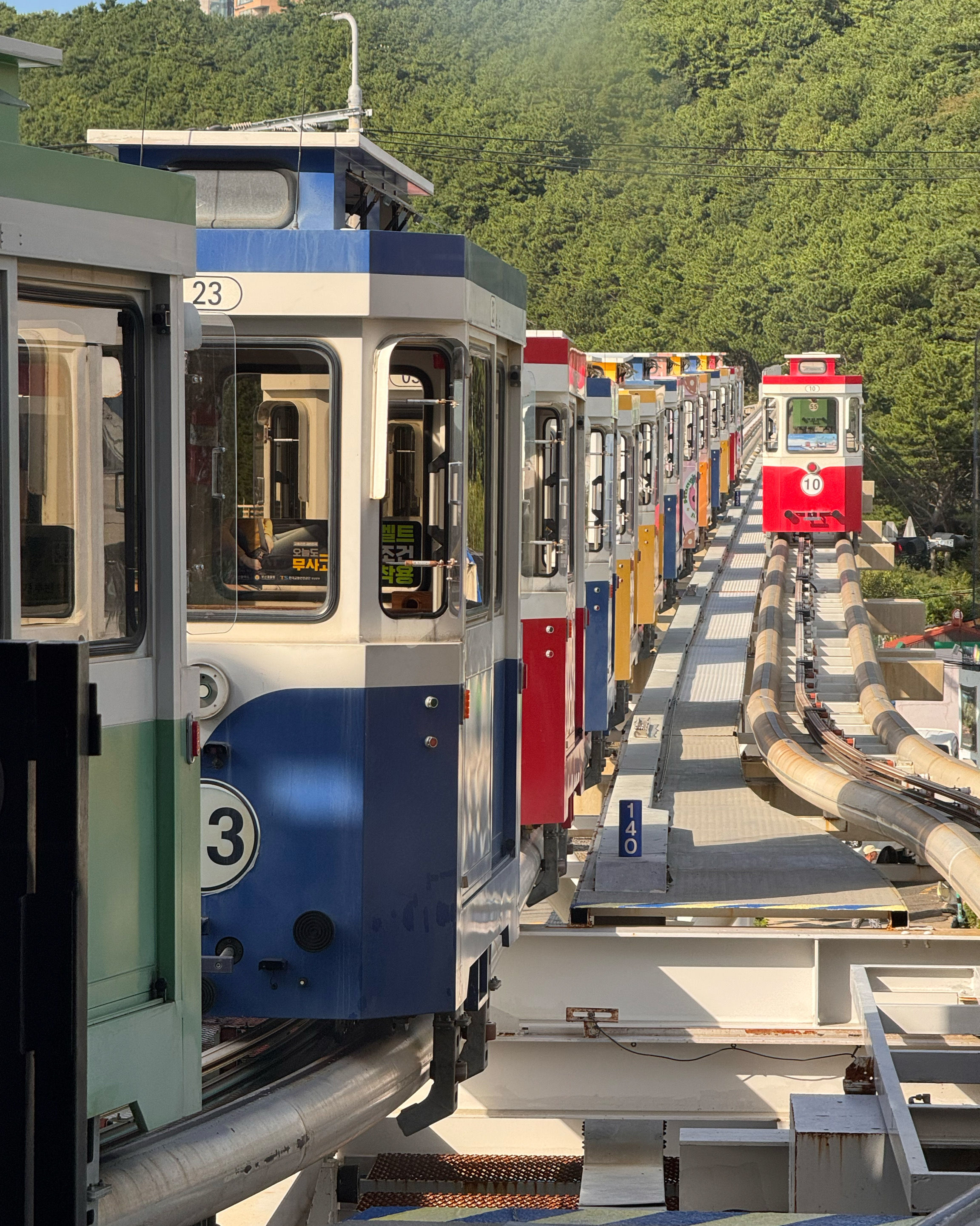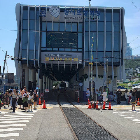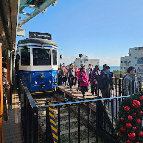 해운대 블루라인 파크 - 청사포역은 부산에서 꼭 가봐야 할 명소 중 하나입니다. 캡슐 열차는 매우 인기가 많아 원하는 시간대를 이용하려면 최소 일주일 전에 예약해야 합니다. 일반 열차도 출퇴근 시간에는 꽤 붐빌 수 있습니다.