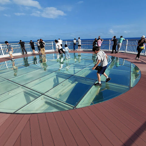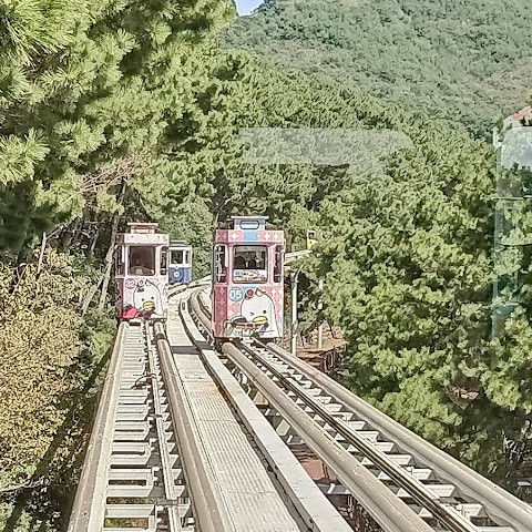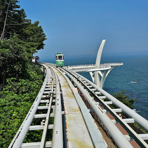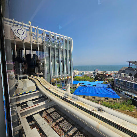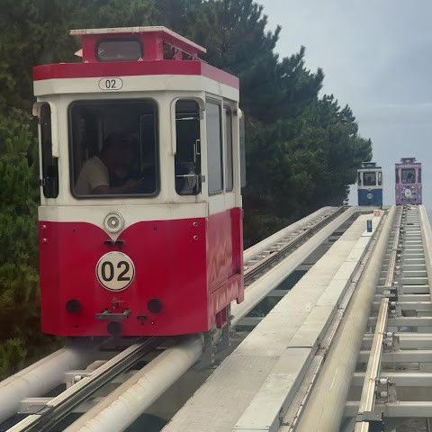 귀여운 스카이 캡슐과 바다 전망을 감상할 수 있는 멋진 해변 열차도 있습니다. 유리 바닥 다리 위의 스카이워크는 정말 재밌습니다. 인기가 너무 많아서 예약이 필요합니다.
