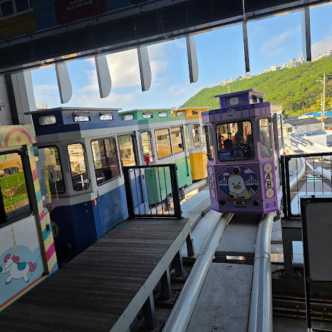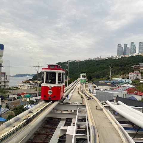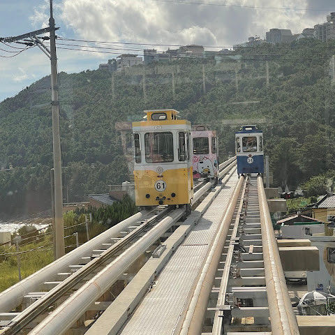 정말 볼 만한 곳이에요! 귀여운 차들이 정말 많았고, 날씨가 꽤 흐렸는데도 경치가 정말 아름다웠어요. 비가 와도 괜찮을 것 같아요! (평소 "쓰레기" 모으는 걸 별로 안 좋아하는 제 입장에서는) 정말 멋진 기념품들이었어요. 꼭 가볼 만한 곳이에요. 천사포에서 가는 게 최고인 것 같아요. 저희는 탑승 대기 없이 바로 갔지만, 미포에서 출발할 때는 줄이 엄청 길었어요. 하지만 청사포에 도착하기 전에 시간을 넉넉히 잡으시는 게 좋아요. 저희는 그렇게 하지 않아서 예쁜 곳들을 꽤 많이 지나쳐서 조금 후회했어요!
